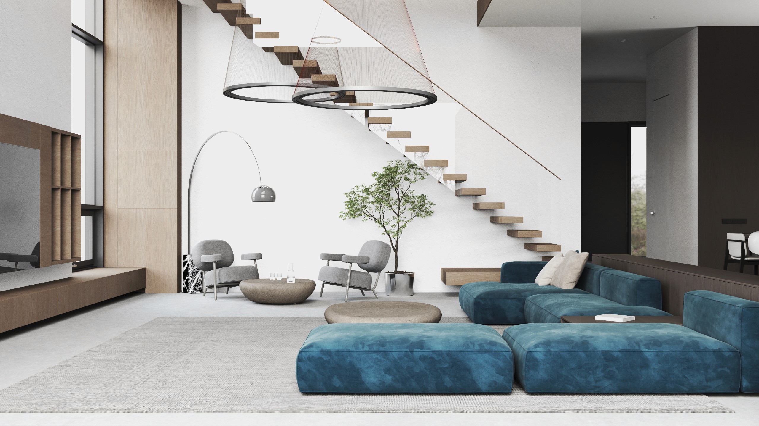 в этом проекте интерьер стал естественным продолжением архитектуры. мы отказались от лишнего декора в пользу объемов, конструкций и пропорций. большие окна и открытое пространство продиктовали сценарий: минимум визуального шума и максимум света.